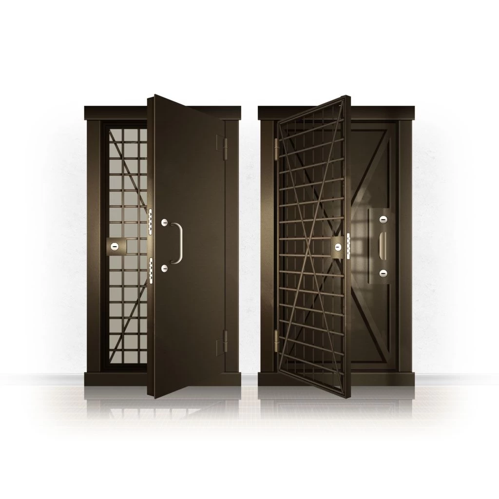 Металлические двери КХО и КХН представляют собой входные блоки, обладающие высоким уровнем взломостойкости и состоят из трех основных элементов: усиленного каркаса, сплошного металлического полотна и решетчатой двери. Дверной блок изготавливается из стального уголка 100*100 мм. Места крепления блока к стене цементируются и закрываются стальными наличниками шириной 40 мм. Крепеж заходит вглубь стены на 80 мм. В конструкции внешней створки монтируются ребра жесткости, для обшивки используется сталь толщиной не менее 3 мм. Внутренняя решетка изготавливается из прутка диаметром 16 мм. Размер ячеек решетки должен составлять не более 15 на 15 см. В точках пересечения прутья надежно приваривают друг к другу. В КХО и КХН необходимо поддерживать определенную температуру и влажность. Для этого внутреннее пространство глухой двери заполняется теплоизоляционным материалом, а по периметру двери приклеивается уплотнитель. Такие двери оборудуются замками с повышенным уровнем взломостойкости. Специализированные двери КХО и КХН в Харабали могут быть оснащены сигнализацией, в конструкции могут быть проушины для навесного замка и элементами для опечатывания. Если идет речь о двери в комнату хранения оружия, в створке оборудуется окно для выдачи оружия и спец. средств, которое накрывается стальной дверцей.
